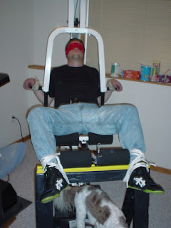 Have you ever been tied up for a haircut. I have twice, both times in a straight Jacket. The first time was in 2004 where I got tied up and secured by Nike Dave. In this set I was wearing the camo pants with Black Asics Wrestling Shoes. The second was in 2007, when I got tied by Barber Bot wearing a one piece Teknic Sport Bike outfit, with black glove Leather Extra Knee High Converse Sneakers, again in the Straight Jacket.